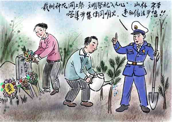 栽树种花网上祭,文明祭祀入人心。山林、杂草密集严禁使用明火,违者依法严惩。