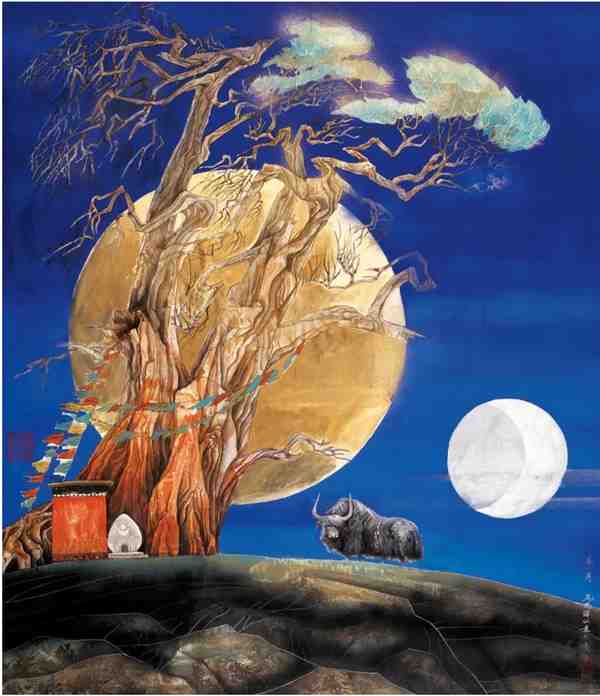 藏族人民在荒寒的雪域中生存下来,展现出了人类生命的顽强和坚定的信念。他们的信仰和精神就像是雪域中的一盏明灯,照亮了他们前进的道路。而尼玛泽仁的画作就像是这盏明灯的投影,它让我们看到了藏族人民的精神世界和他们对生活的热爱和向往。