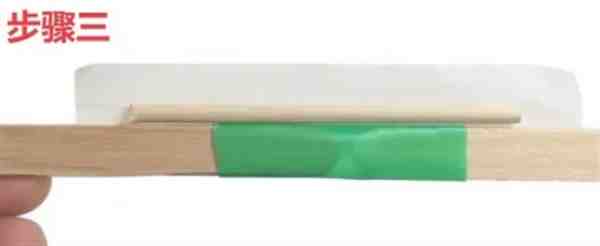 2.然后先用胶布把两根冰棍棒首尾相连粘好