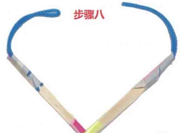 3.然后再把小木棍粘在两根冰棍棒连接处,做固定用