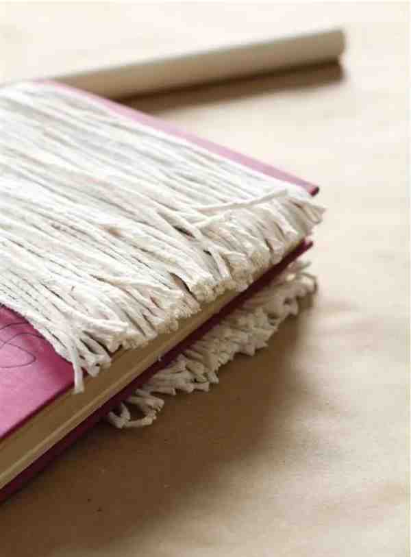 Step 2.将缠在书上的棉线用剪刀剪断一边。
