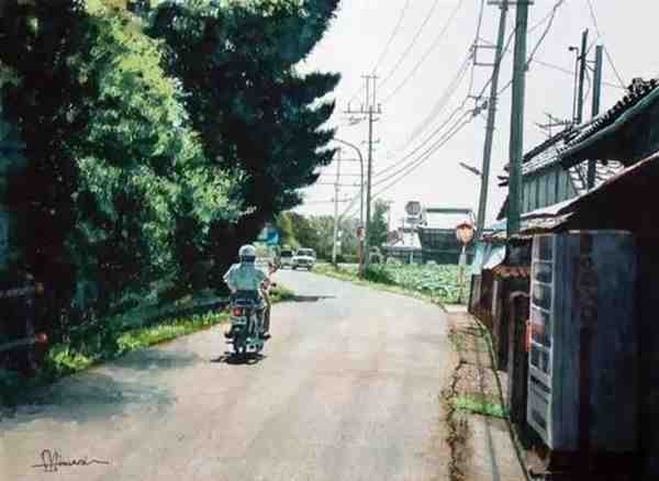 田中己永的水彩画以风景为主,都是生活中,路途中的细微风景片段,都是那么的安静,平静,静谧而生机盎然,洋溢一种清新脱俗的情感。