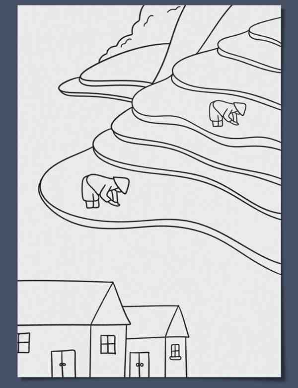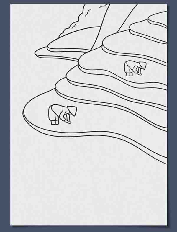 Step 1.画纸随意用曲线圈出稻田轮廓。