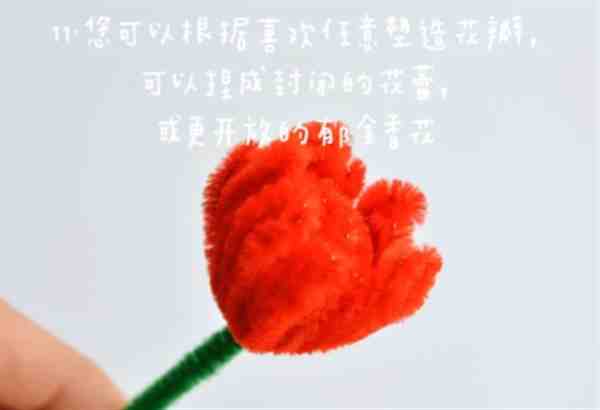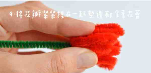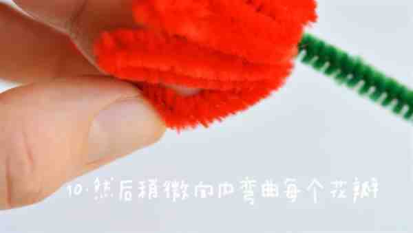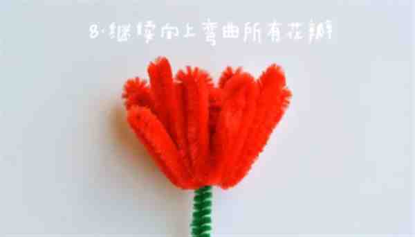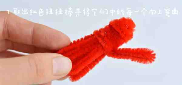 7、塑造花瓣取出红色的扭扭棒,并将每一根向上弯曲。