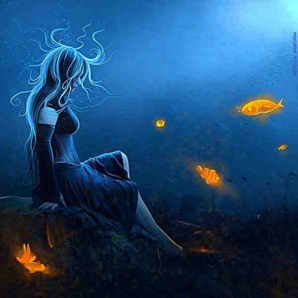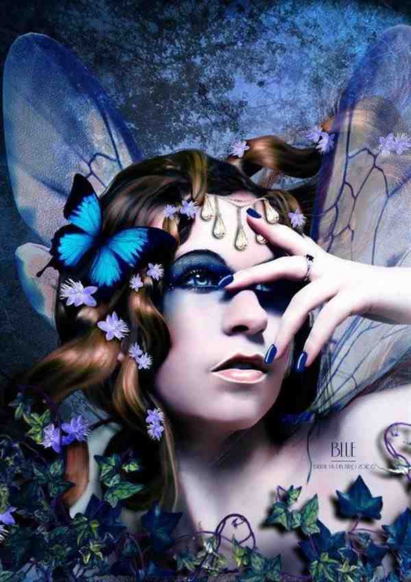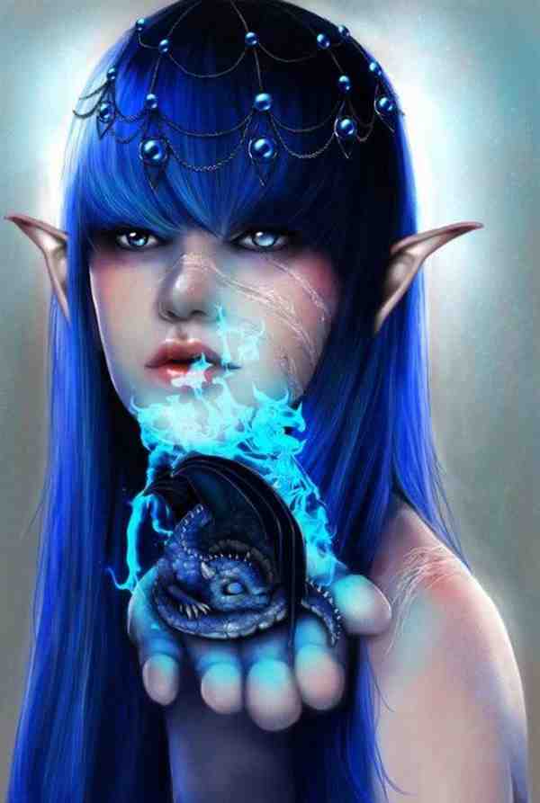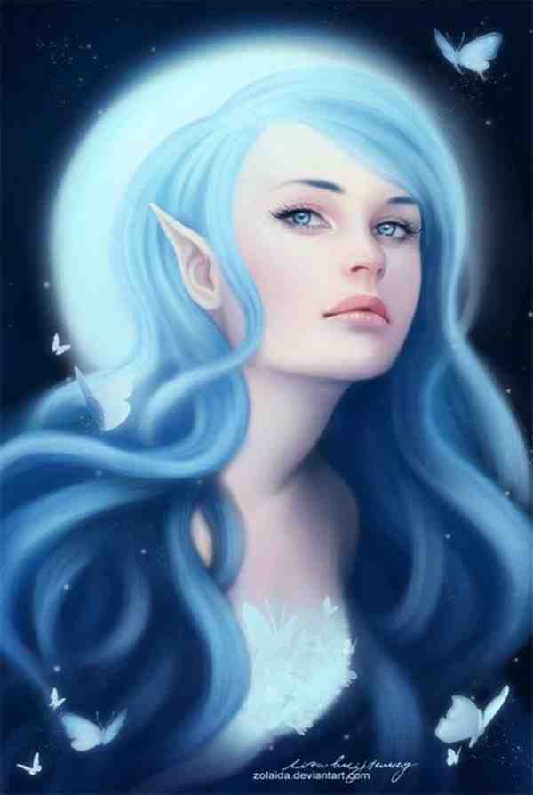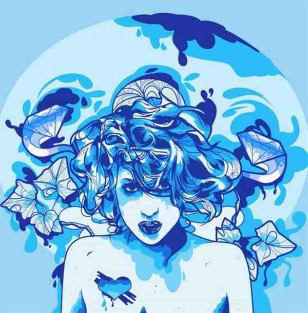 蓝色美少女肖像插画高清精美图片