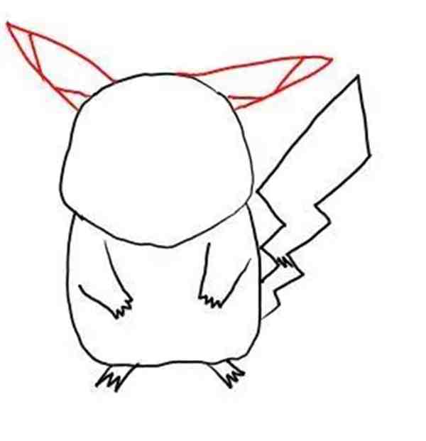 先画出皮卡丘的头部和躯干的轮廓,然后顺着去干画出皮卡丘的手臂和手脚。
