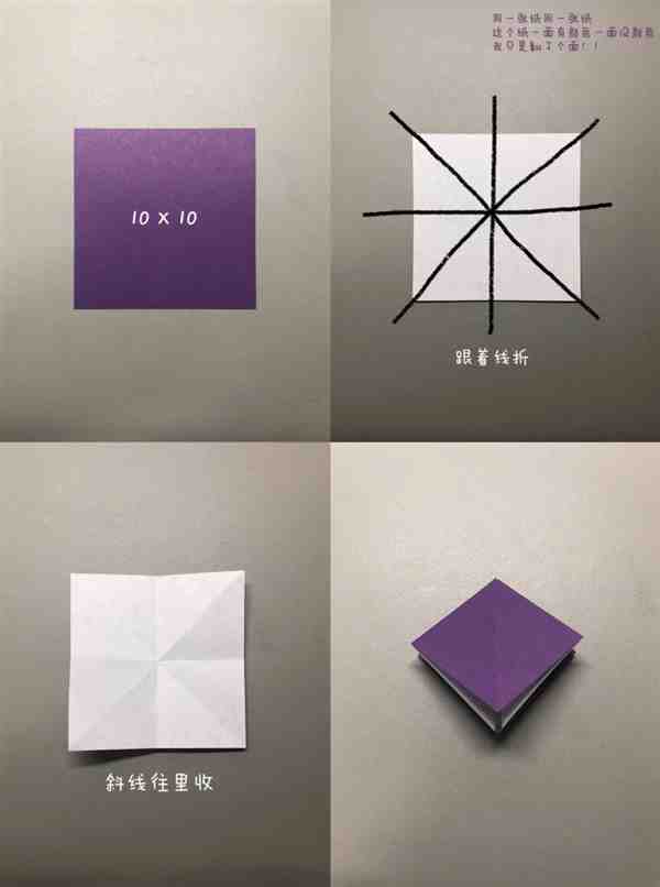 Step 1.一张紫色正方形纸(10cxX10cm)。