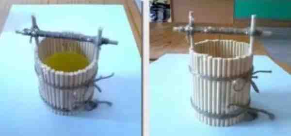 用牙签和口香糖盒子做的小水桶