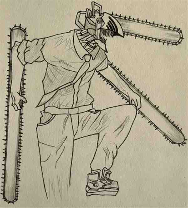 一步一步教我画电锯人图片大全