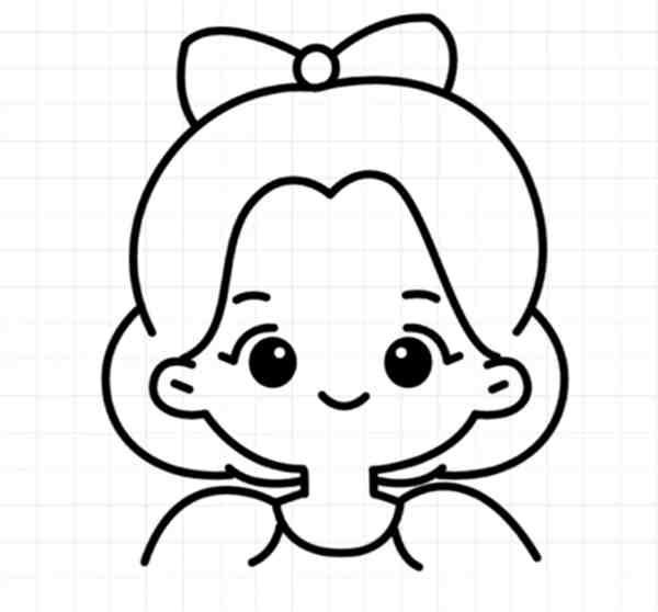4、使用括号和弧线来画出少女的脸庞,同时用圆润的线条勾勒出她的表情。